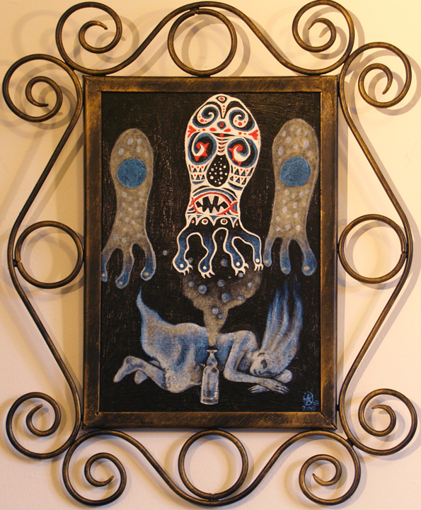 Acrylique sur carton et cadre métallique