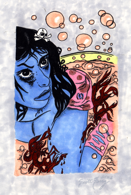 Marqueurs, gel et pigment sur papier aquarelle
